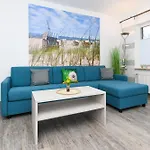 Mevsimlik açık havuz, güneşlenme terası, güneş terası ile donatılmış Haus Strandkorb Bensersiel, Bensersiel şehrinde Ferienhof Inselblick'dan 2 kilometre mesafede yer almaktadır. Daire Bensersiel şehrinin merkezine 5 dakikalık yürüme mesafesinde yer almaktadır.
